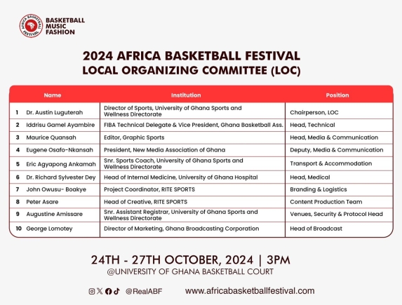The much-anticipated 2024 Africa Basketball Festival has moved a step closer to realization with the announcement of the official Local Organizing Committee (LOC).