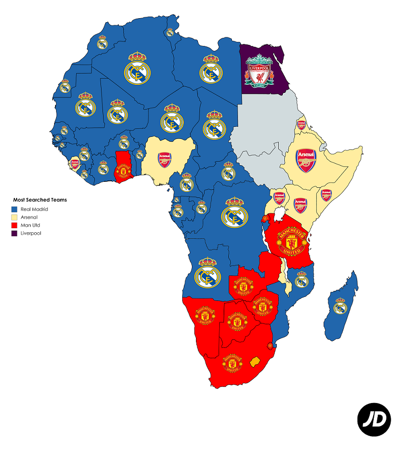 Egypt was the only country not to favour one of the aforementioned three clubs, opting instead to search for Liverpool, which comes as no surprise considering the clubs Egyptian forward Mohamed Salah.
