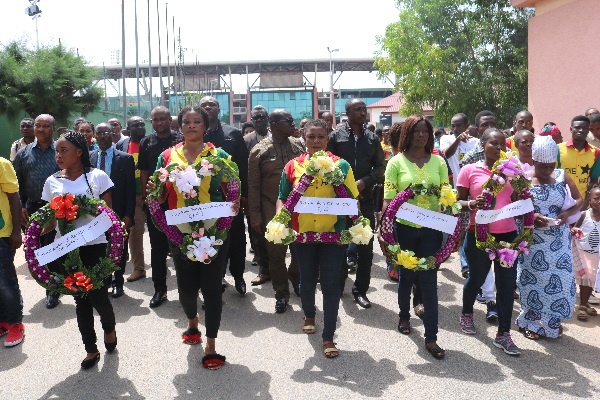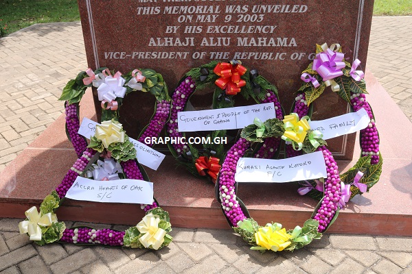 The departed were remembered with a wreath-laying ceremony at the Accra Sports Stadium after prayers were said for their souls.