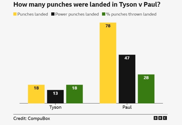 Tyson landed only 18 punches in the entire fight, compared to Paul's 78.