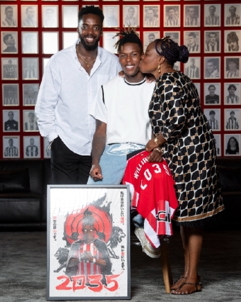 The signing took place at San Mamés in the presence of club president Jon Uriarte, director of football Mikel González, his brother and club captain Iñaki Williams, and their mother, María Arthuer—who also serves as an ambassador for Athletic Club’s 125th anniversary. Friends of the forward surprised him with a personalized painting to mark the occasion.
