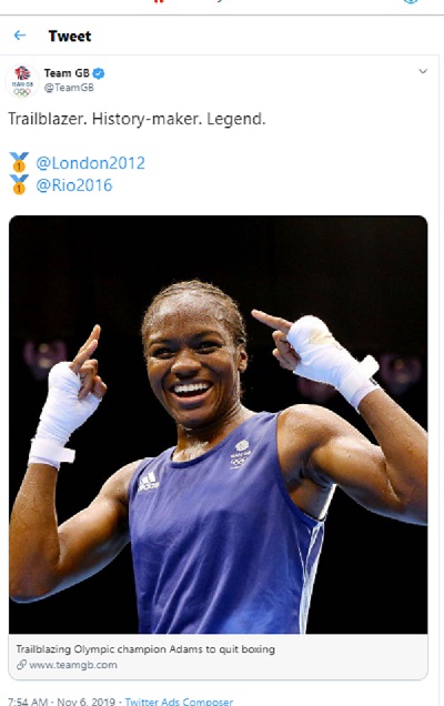 Adams' promoter Frank Warren said the boxer's accomplishments would "go down in history", calling her an "icon" of British sport.