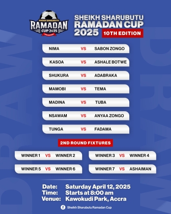 The tie, which features two of Ghana’s most traditional Zongo strongholds, was confirmed at the official draw held in Accra yesterday. This year’s edition, dubbed a special commemorative tournament, marks a decade of the annual event held in honour of the National Chief Imam, Sheikh Osman Nuhu Sharubutu.