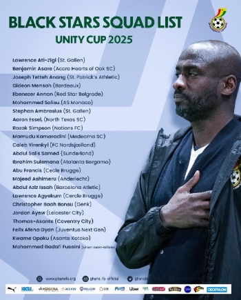 Black Stars head coach Otto Addo has handed debut call-ups to five promising youngsters ahead of the Unity Cup 2025, set to take place in London.