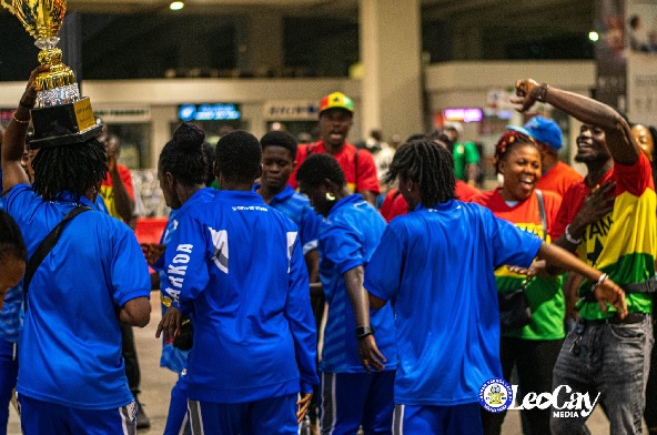 PHOTOS: Ampem Darkoa Ladies arrive home after WAFU Zone B Cup triumph