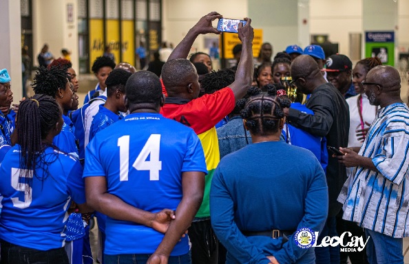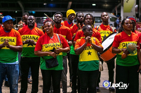 The Die Hard Supporters Union of Ghana were also in attendance to cheer the gallant team on as they arrived yesterday.