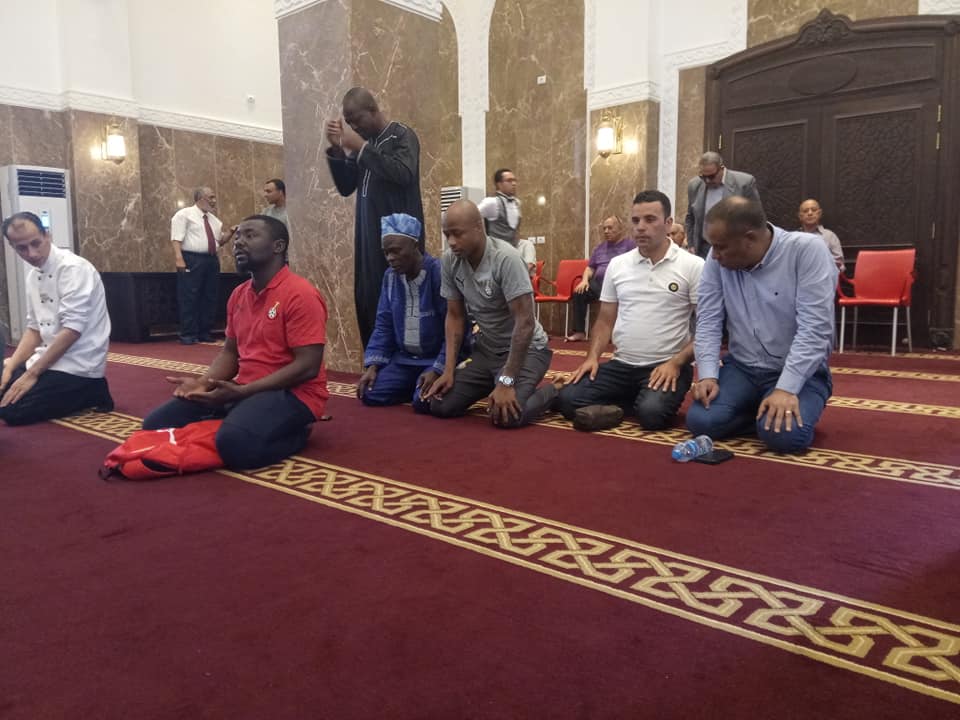 Some members of the Black Stars have offered Jum’a Prayers at the Tolip Hotel Mosque in Egypt ahead of Ghana's AFCON 2019 Group F clash with the Indomitable Lions of Cameroon on Saturday.