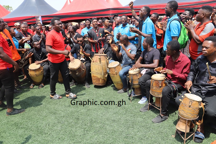 The event grounds was flooded with a sea of red and black colours signifying the state of hundreds of mourners who thronged the venue to commiserate with the family.