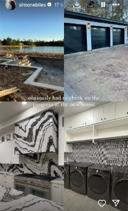 "Obviously had to check in on the progress at the new house," Biles added, sharing pictures of the pool, garage, kitchen and laundry room.