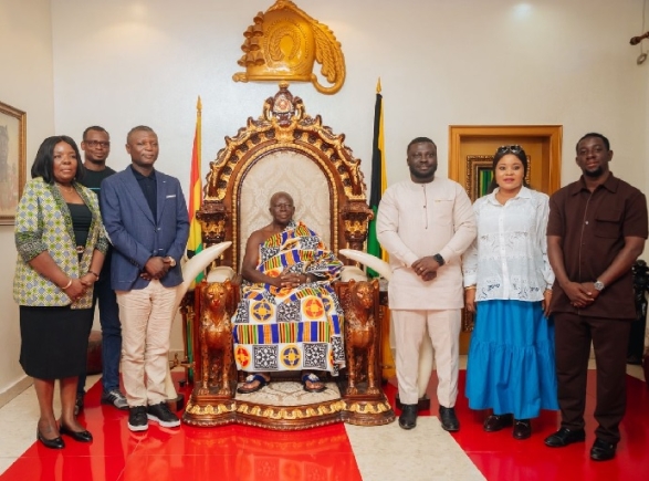 After a detailed inspection of the Baba Yara Sports Stadium and the stalled Nyinahin Youth Resource Centre, Hon. Kofi Iddie Adams, Minister for Sports and Recreation, paid a courtesy call on His Majesty Otumfuo Osei Tutu II at Manhyia Palace to brief him on the urgent works required at both projects.