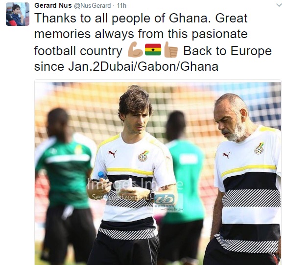 Spanish coach Gerard Nus has thanked Ghanaians after finally leaving the country for Spain on Sunday.