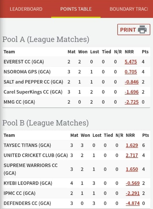 Elsewhere in Pool A, Nsoroma GPS posted 125 runs for 6 wickets in 20 overs and in reply MMG could only muster 100 runs and were all out in 18.4 overs. Nsoroma carroied the day by 25 runs.