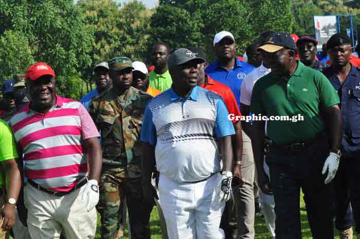 The two traditional leaders arrived together in Otumfuo's sleek limousine and proceeded to the course where they hugged each other before teeing off which was received by a spontaneous applause.
