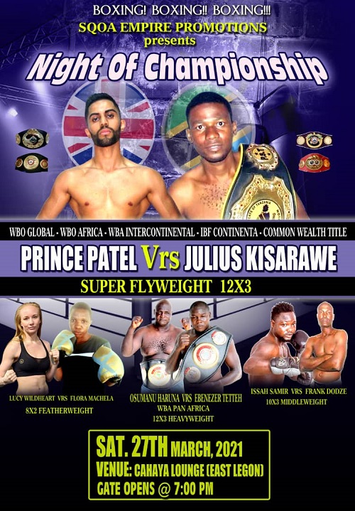 The match, which is a co-headline bout on the night dubbed “Night of Championship”, is a Soaq Empire Promotion boxing syndicate that also has British Prince Patel and Tanzanian Julius Kisarawe as the other top on the bill fight on the night.