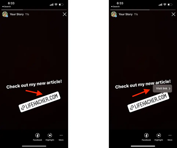 Earlier, this functionality was available to select users only and the links showed up as a swipe-up button at the bottom.