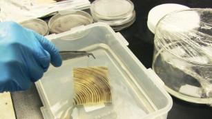 "We don't disturb these channels -- and so for the first time, we can maintain the backbone structure of the wood, and make it transparent, while simultaneously making it stronger."