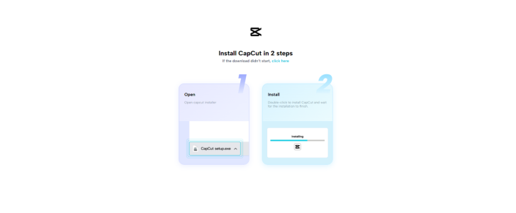 Go to the official CapCut website. Click the download button to get the setup file for CapCut Desktop Video Editor. Once downloaded, open the file and follow the steps on screen to install it.